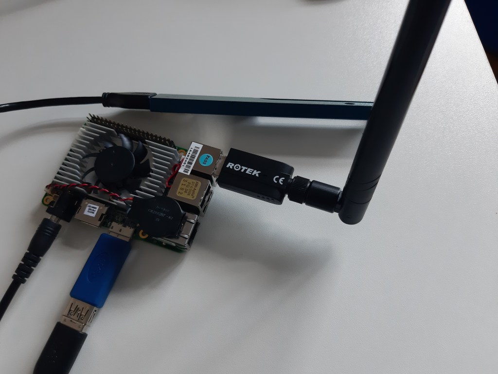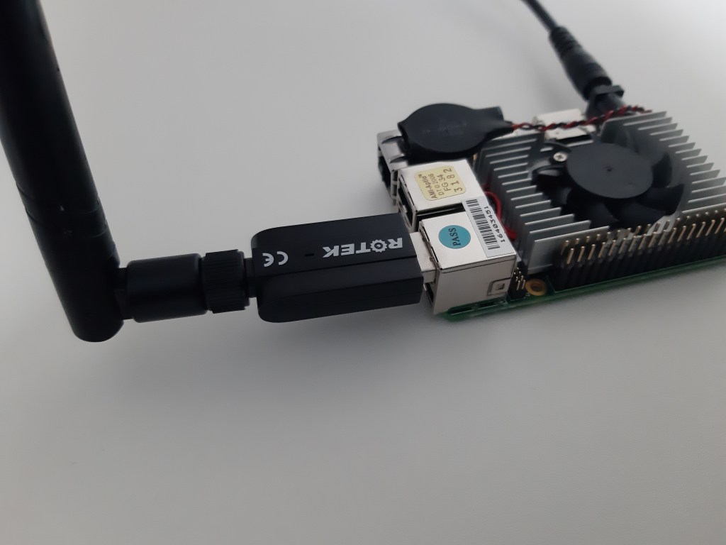 The UP board shipped with the Intel Robotics Development Kit only supports an Ethernet connection, so an external WiFi card is required. We connected a Rotek AC1200 dual band wireless USB 3.0 adapter, which requires RTL8811/RTL881 drivers, as shown below.